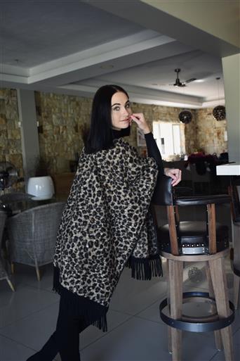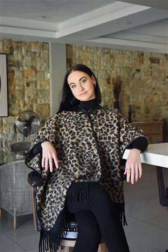 Stay chic and cozy with the Jolie Leopard Poncho – a stylish statement piece featuring a bold leopard print, soft fabric, and a relaxed fit perfect for layering.