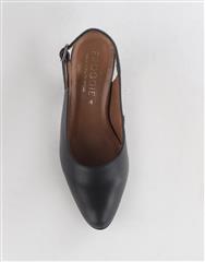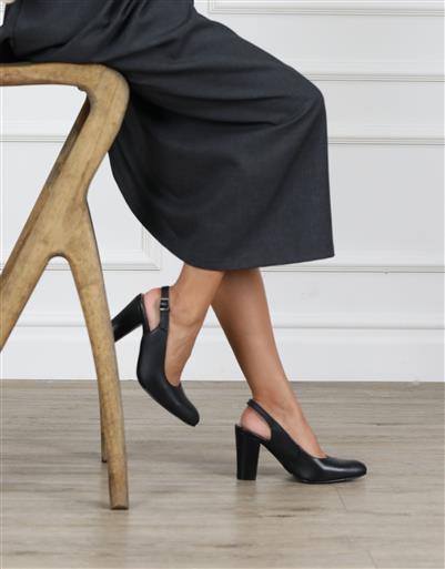 A sophisticated slingback heel with a structured profile and smooth leather finish. Designed for secure wear with a comfortable elevated heel.