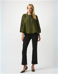 Introducing the Joseph Ribkoff top, a perfect blend of casual and semi-formal style. This hip-length, regular-fit top features a collared neckline and an eye-catching abstract pattern. With its 3/4 straight sleeves embellished with jewels and a convenient zipper closure, this top effortlessly combines elegance and practicality. Ideal for everyday wear, it’s the ultimate addition to your wardrobe.