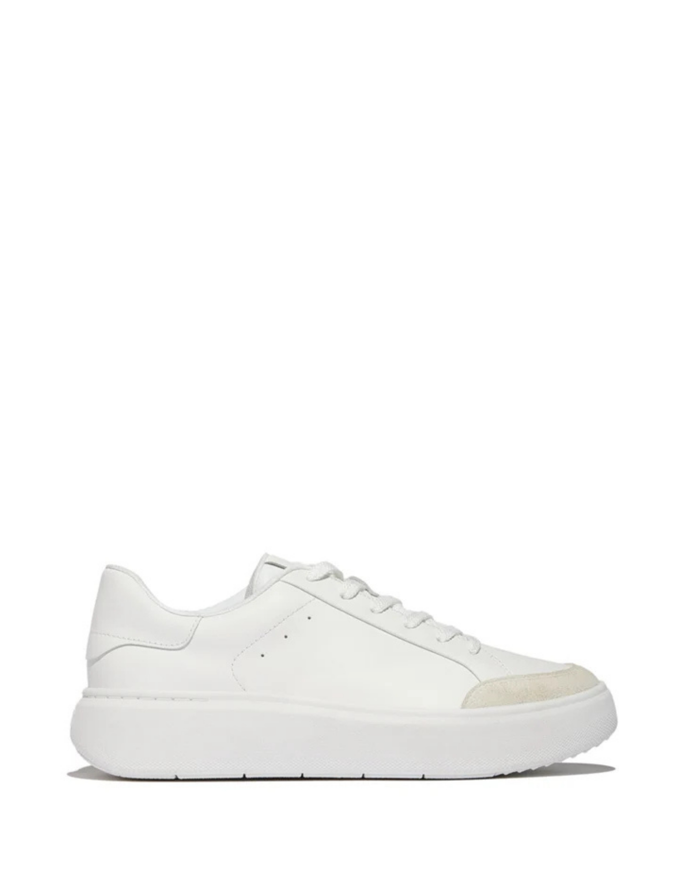 A sleek everyday sneaker designed for comfort and style. Crafted from premium white leather with a clean modern silhouette, this FitFlop sneaker features ergonomic cushioning and a lightweight sole for all day support. Finished with a durable rubber outsole and subtle suede toe detail, it is perfect for work, travel, and casual wear.