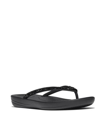 FIT FLOP ALL BLACK IQUSHION MULTI CRYSTAL FLIP FLOPS