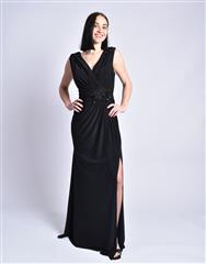 ROSELLA PRETO BLACK EMBELLISHED EVENING DRESS
