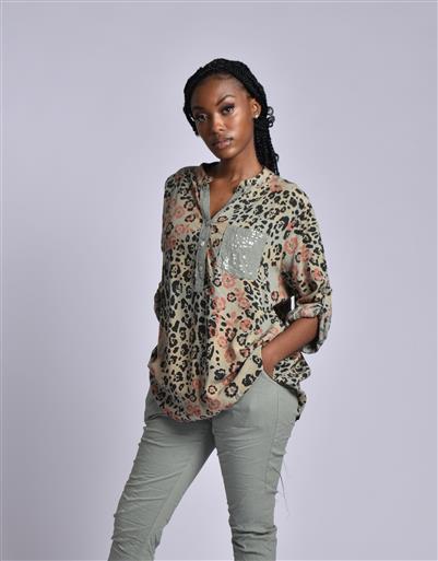 MADE IN ITALY BLACK LEOPARD PRINT BLOUSE