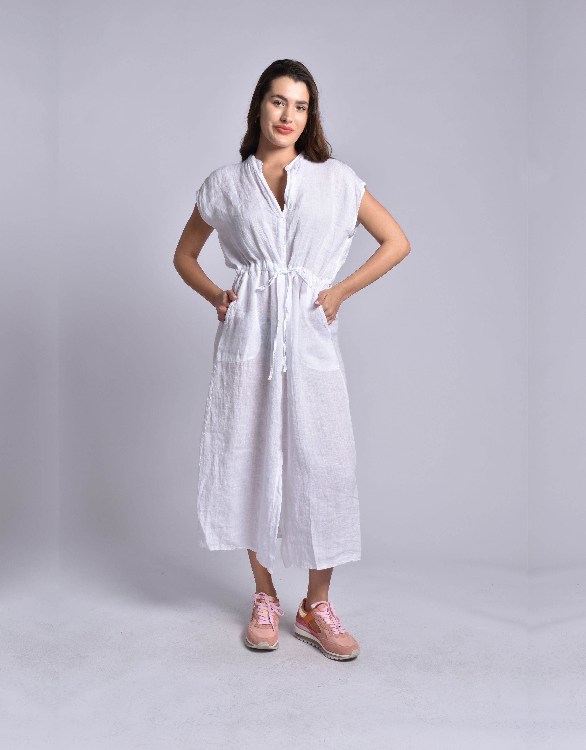 MADE IN ITALY WHITE LINEN LONG DRESS