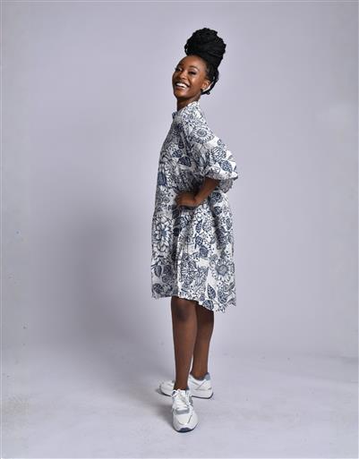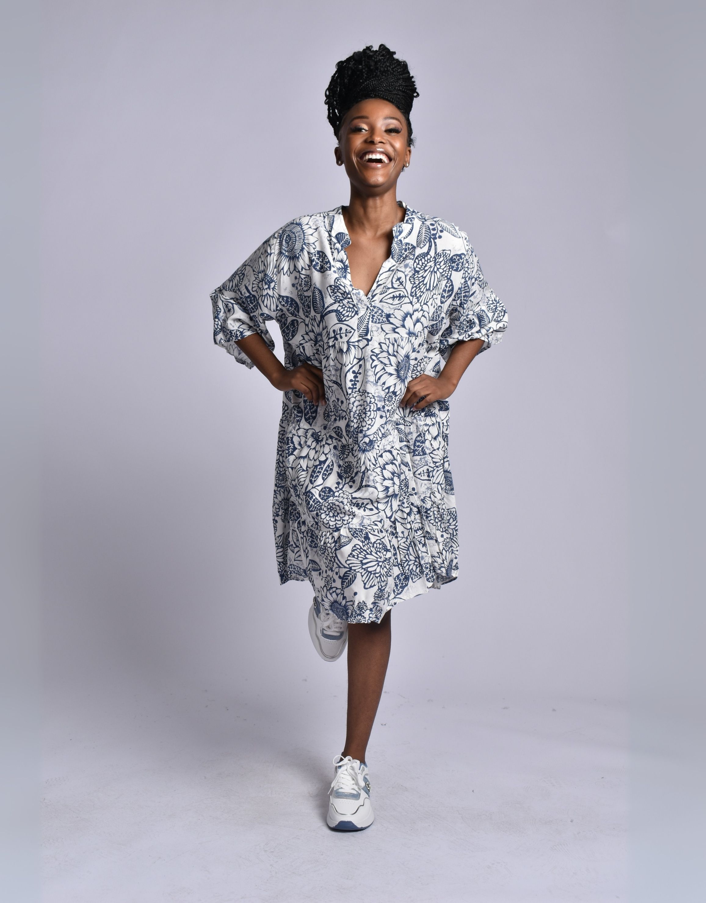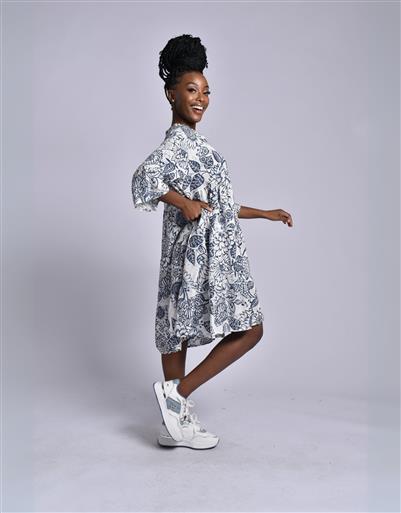 MADE IN ITALY WHITE BLUE SHORT DRESS