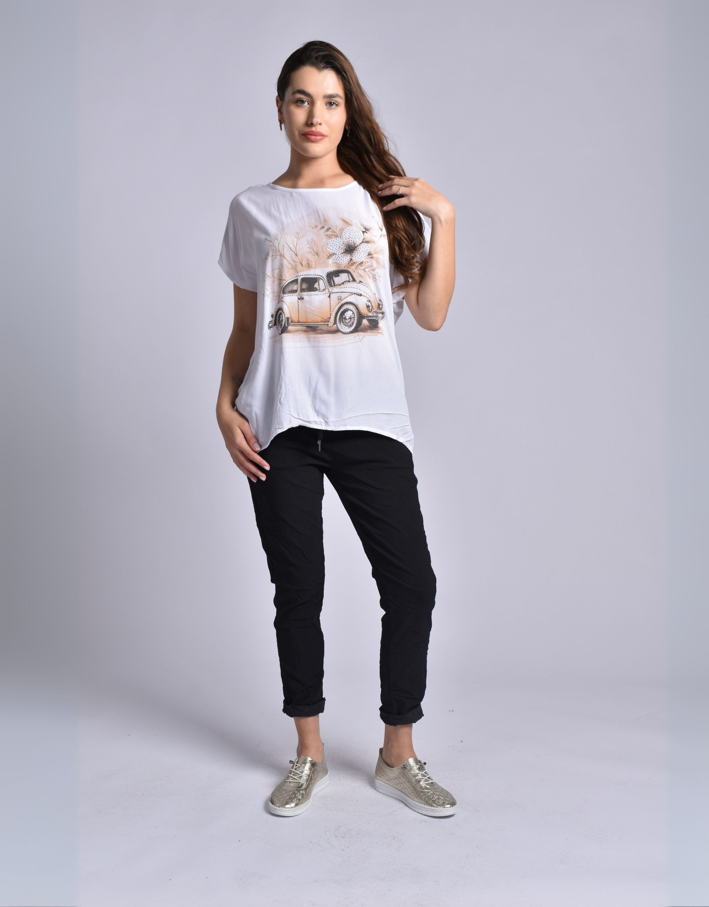 MADE IN ITALY WHITE BROWN BEETLE TOP