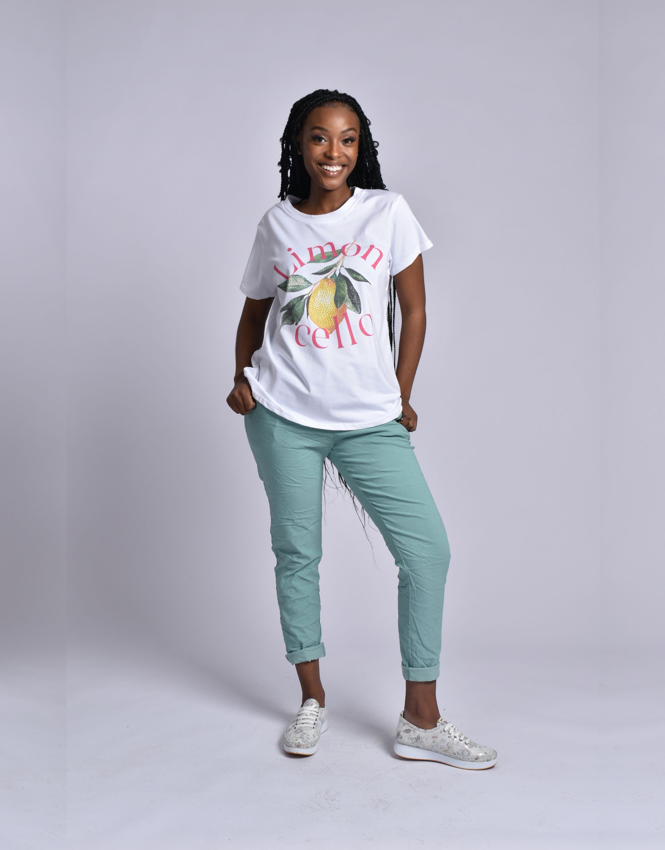 MADE IN ITALY WHITE PINK LIMON CELLO T-SHIRT