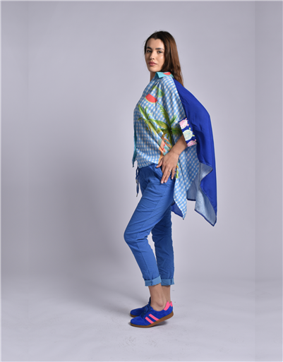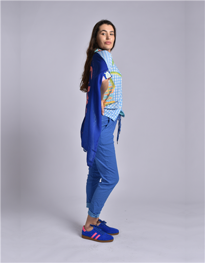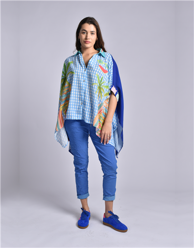 MADE IN ITALY BLUE GREEN LOVE & PEACE BLOUSE