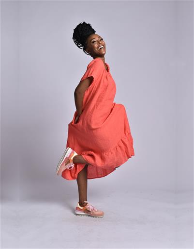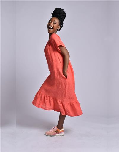 MADE IN ITALY ORANGE LINEN LONG DRESS
