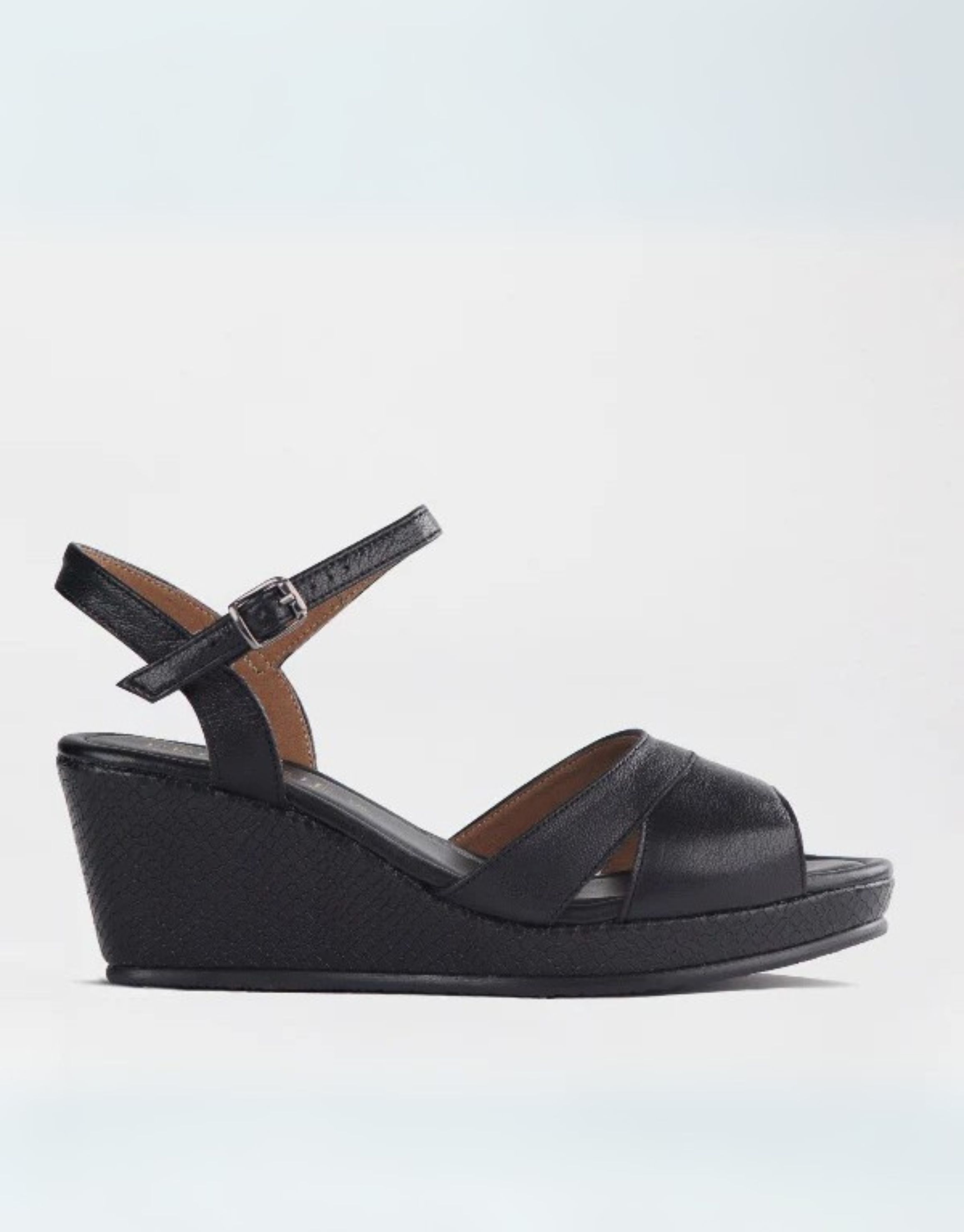 FROGGIE BLACK MULTI PEEP TOE WEDGE