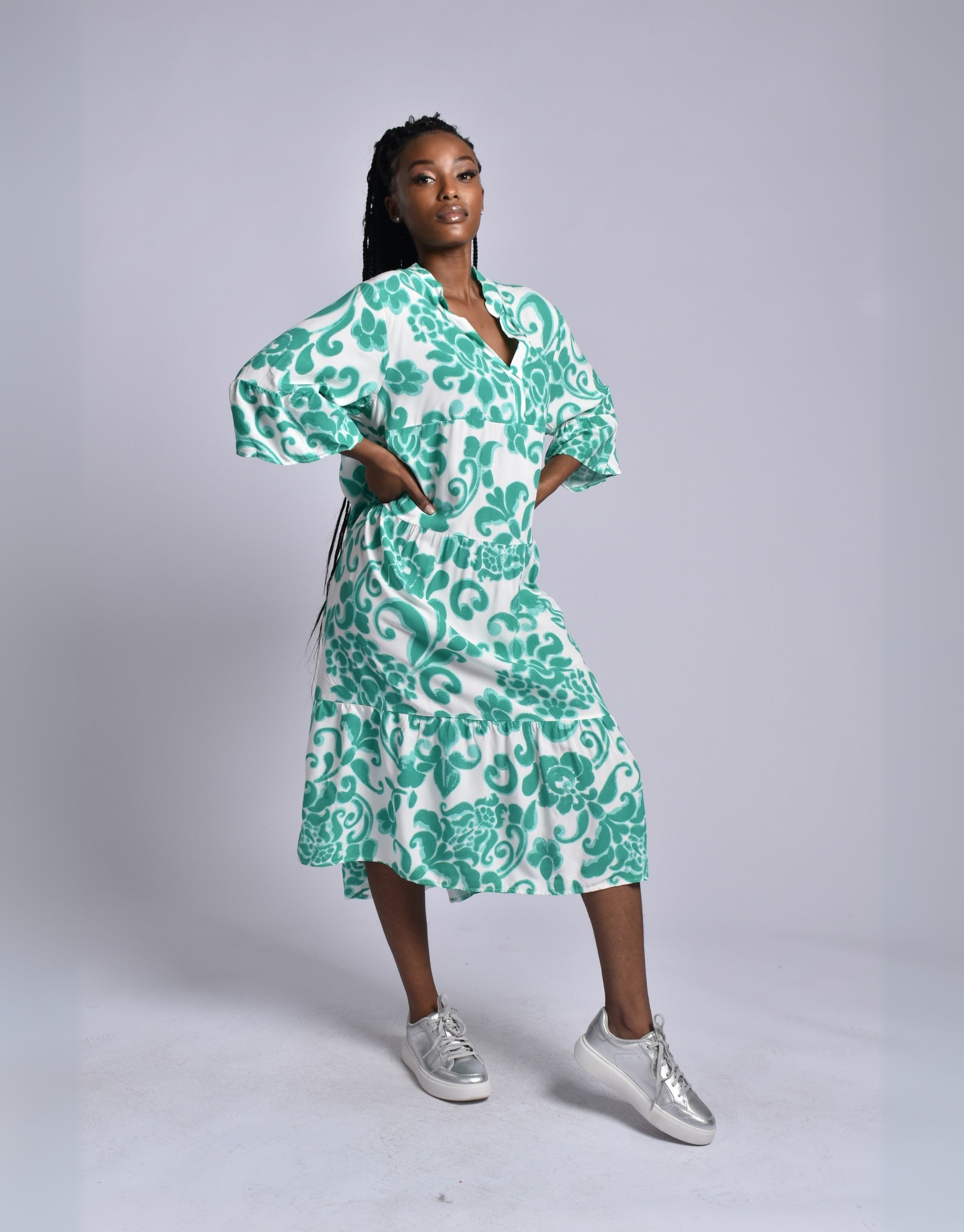 MADE IN ITALY WHITE GREEN DRESS