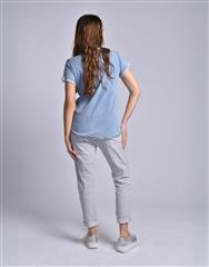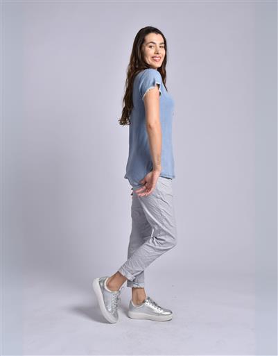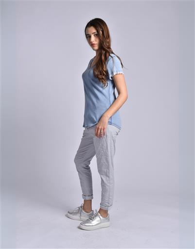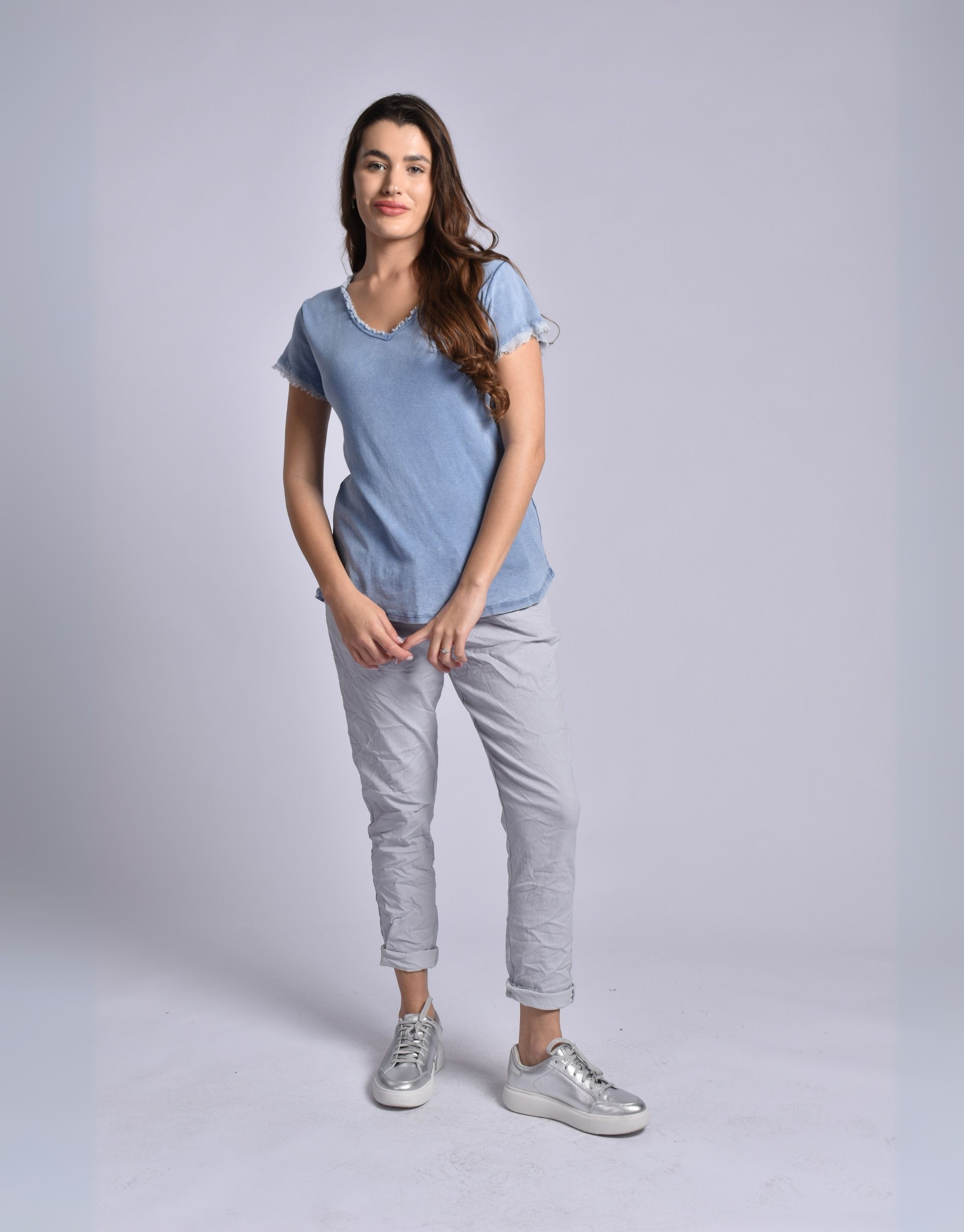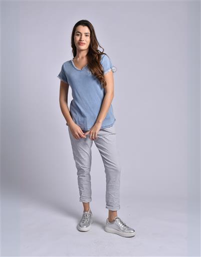 MADE IN ITALY LIGHT BLUE RUFFLED V-NECK TOP