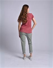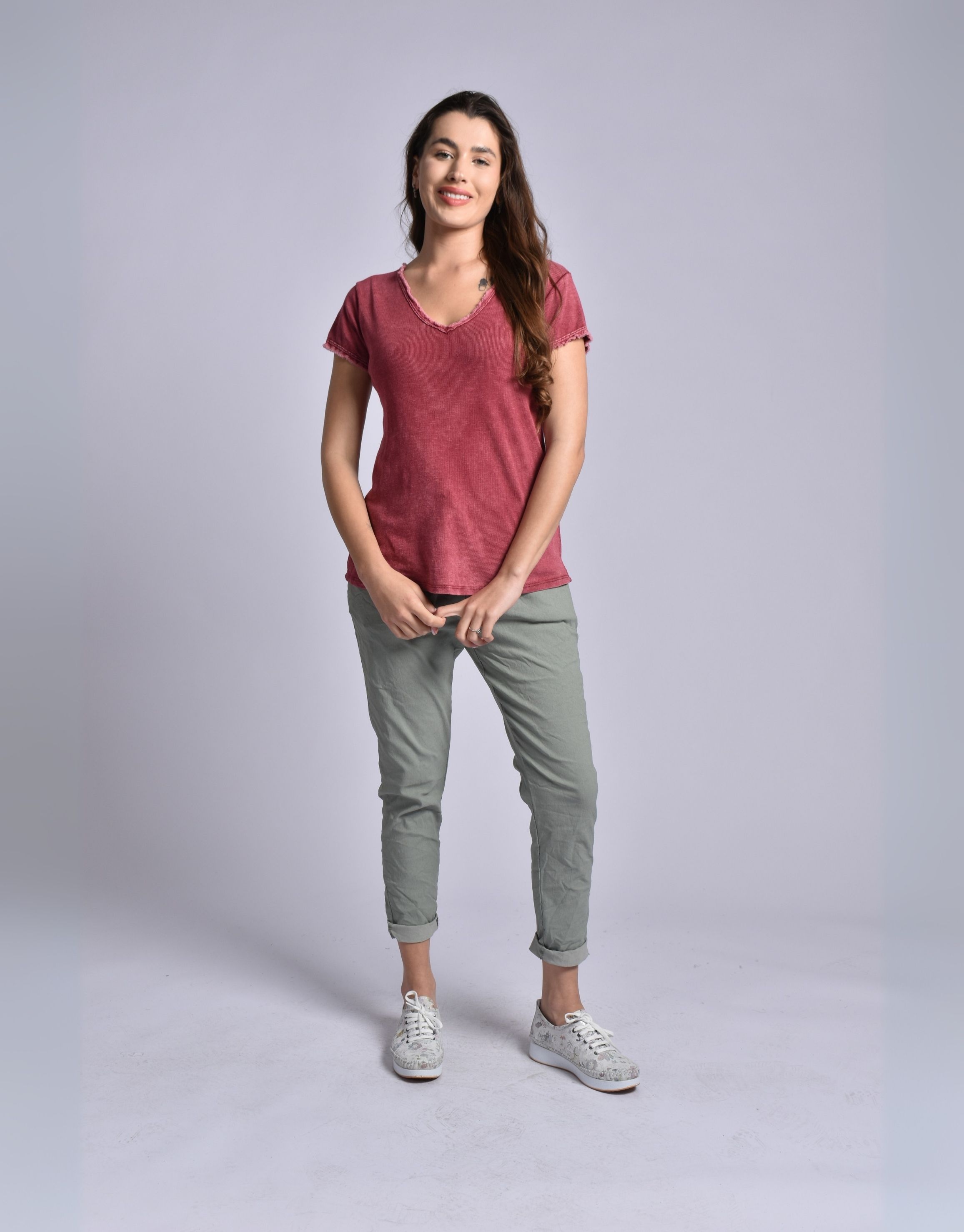 MADE IN ITALY LIGHT MAROON RUFFLED V-NECK TOP