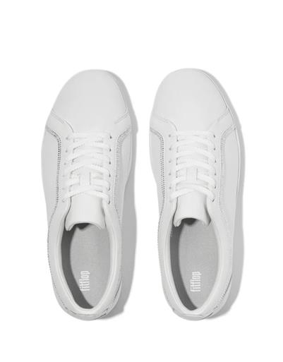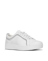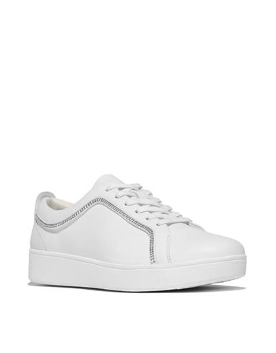 FIT FLOP WHITE RALLY CRYSTAL TRIM LEATHER TRIANERS