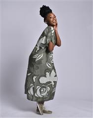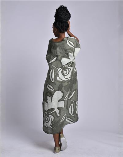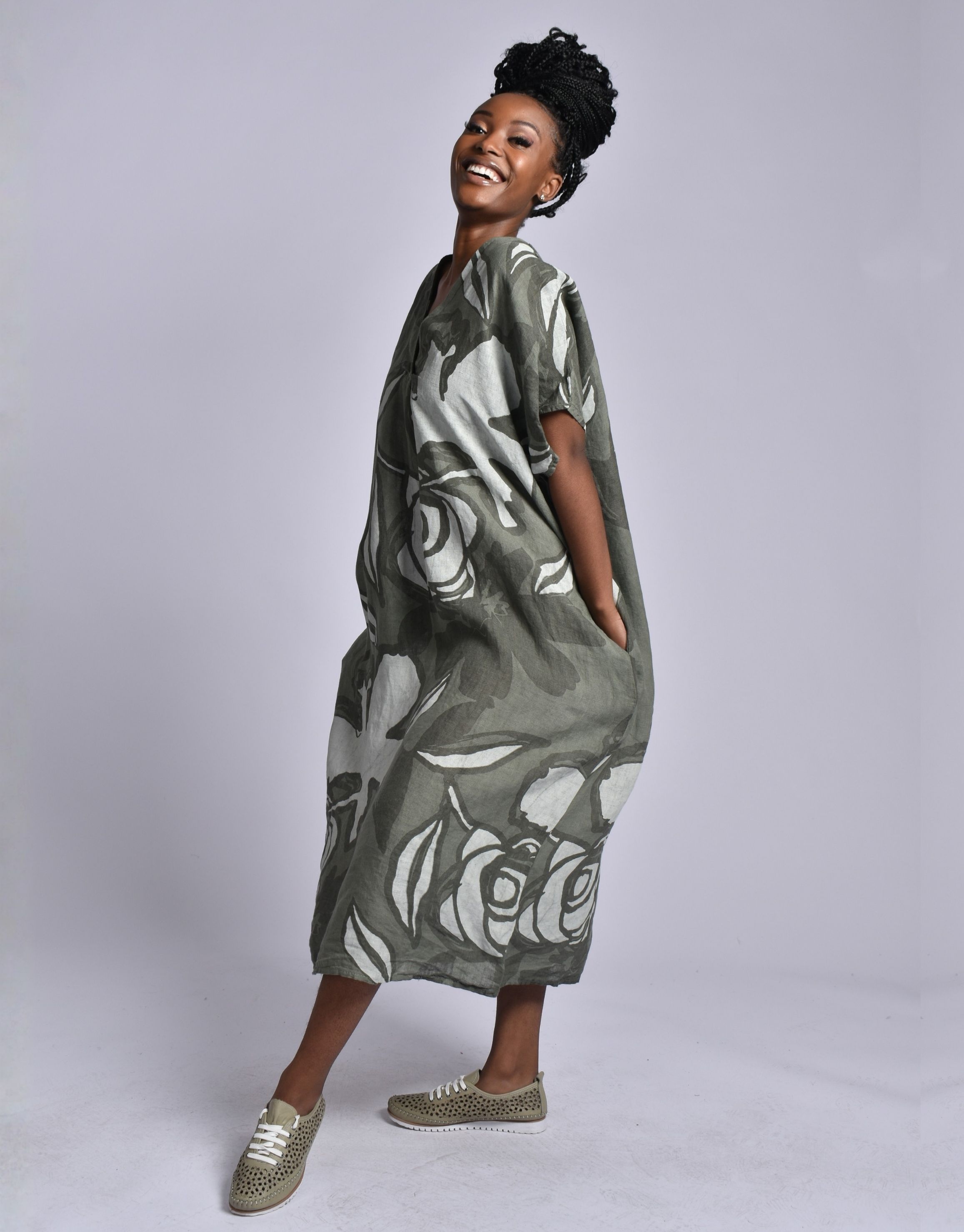 MADE IN ITALY GREEN MULTI LINEN DRESS