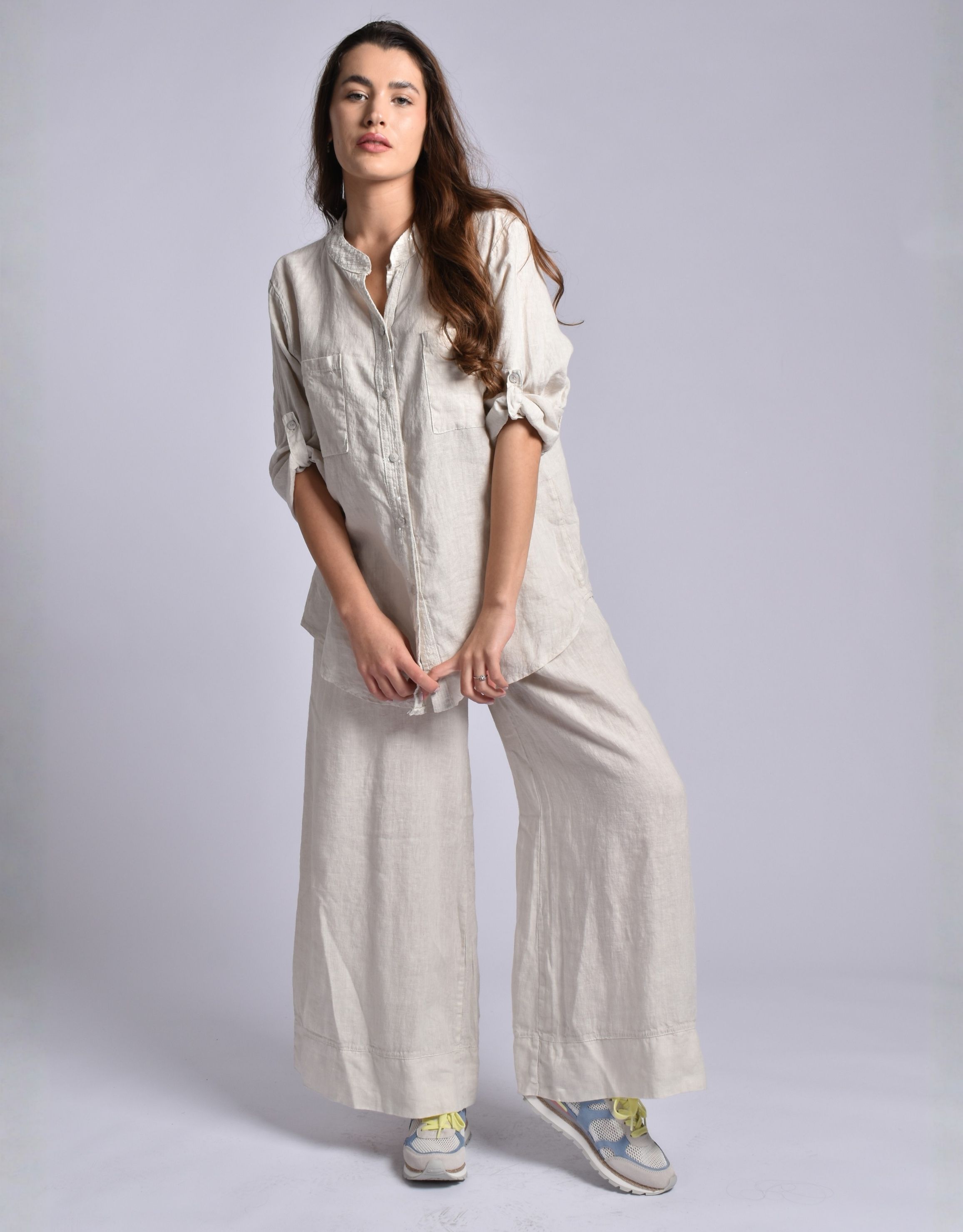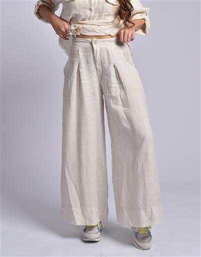 MADE IN ITALY CREAM LINEN PALAZZO PANTS