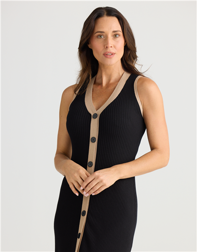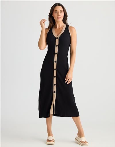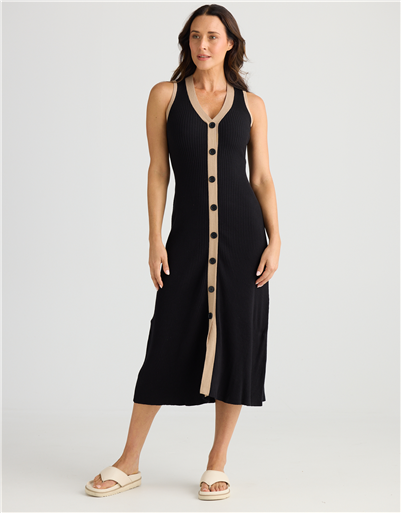 BRAVE & TRUE BLACK WHITE BEIGE ROUGE DRESS