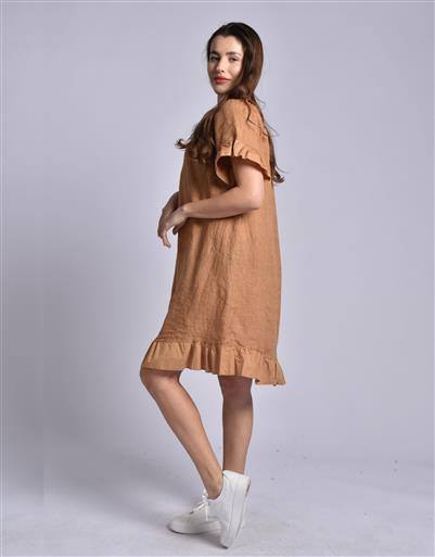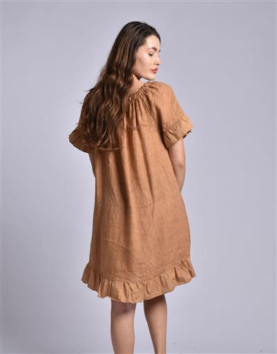 MADE IN ITALY BROWN LINEN SHORT DRESS