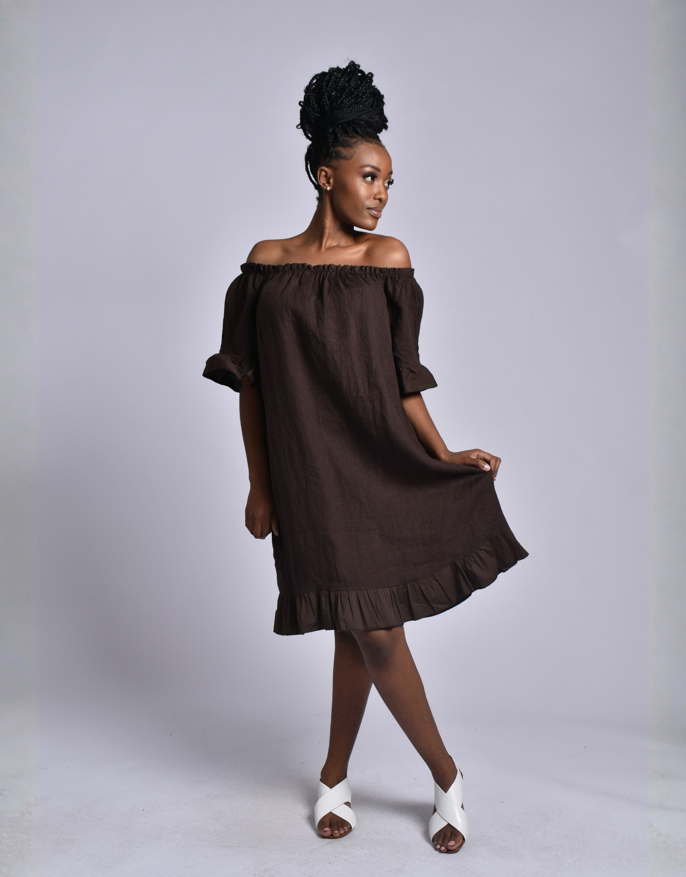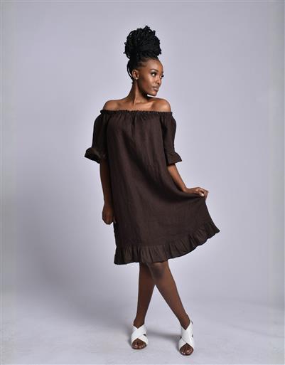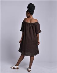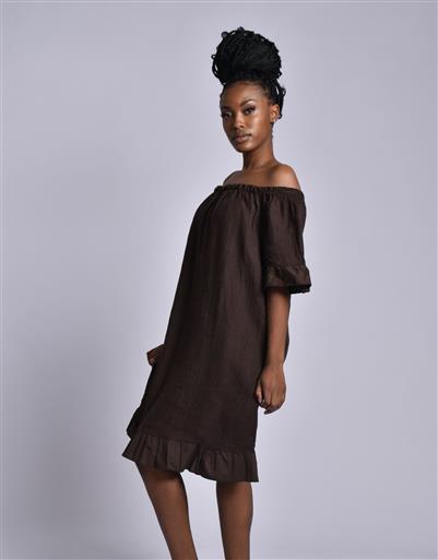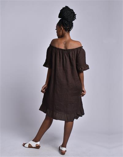 MADE IN ITALY CHOCOLATE LINEN SHORT DRESS