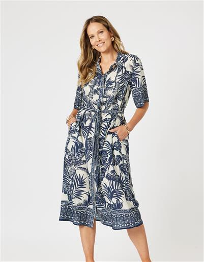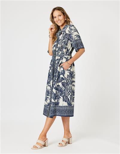 Collared, button-up maxi shirt dress with removable and ajudtable belt.