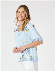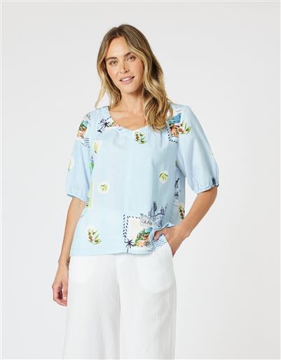 Postcard print top.