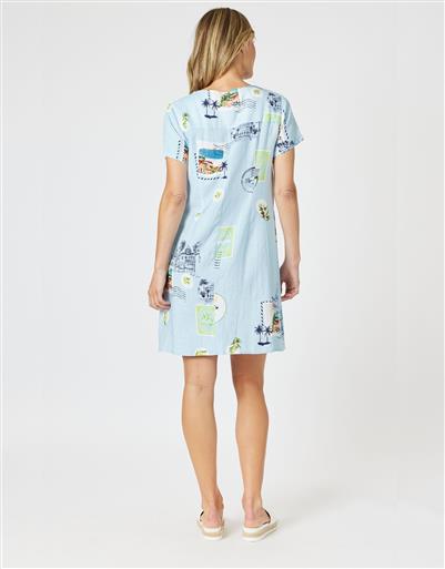 Postcard print dress.
