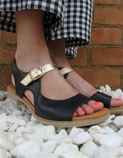 PAULA URBAN BLACK CHAMPAGNE FLAT HEELED SANDAL