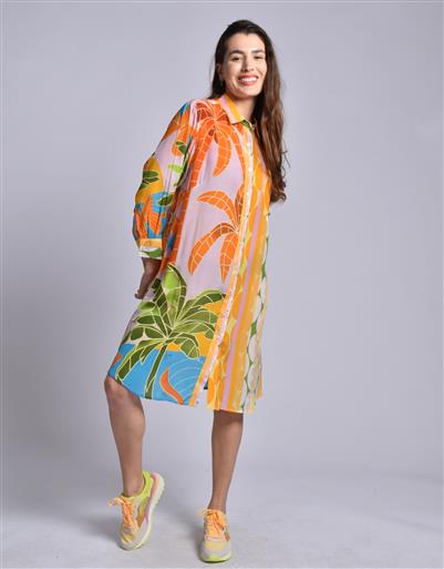 JOLIE ORANGE PINK ANNIE SHIRT DRESS
