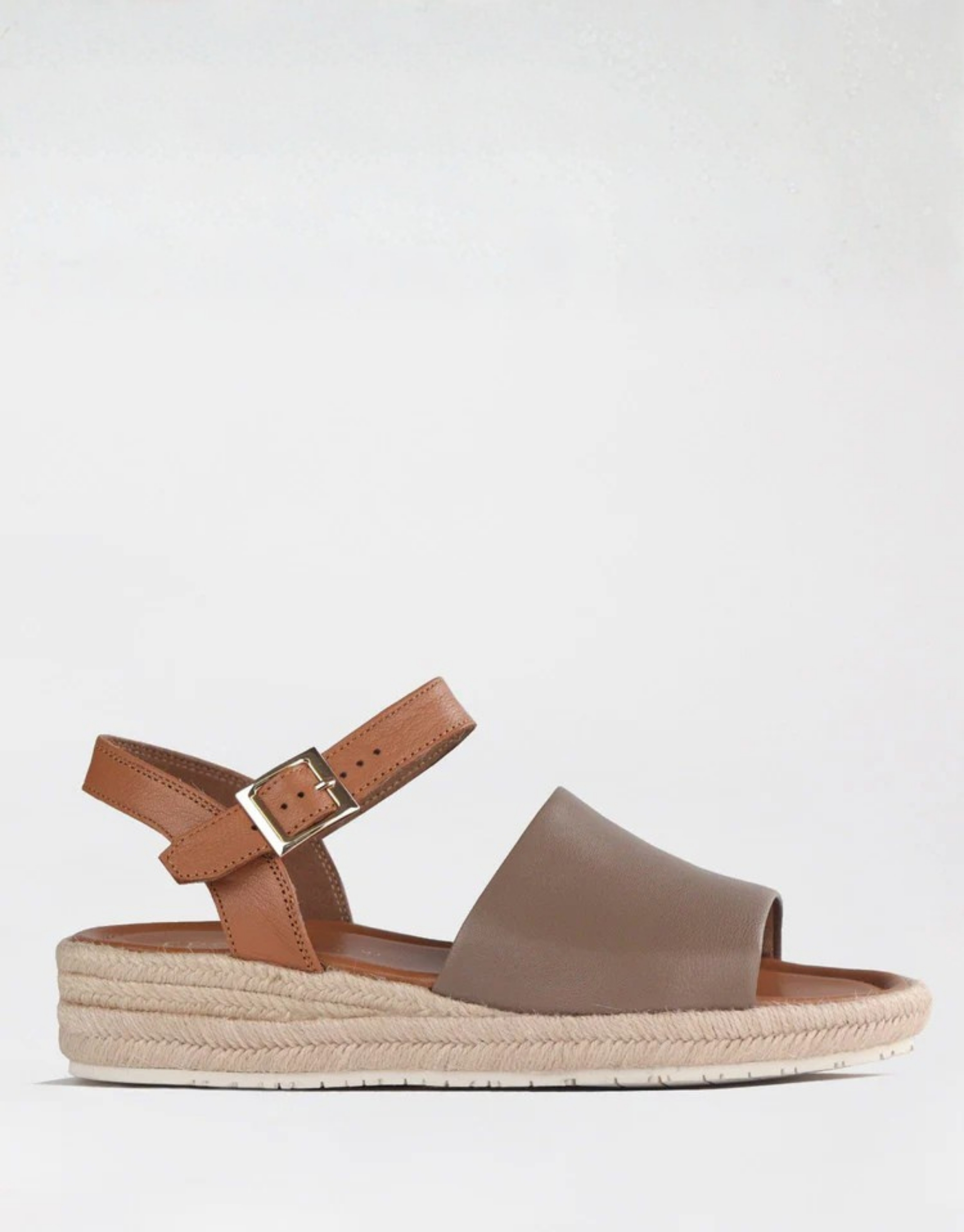 Keep your look soft and effortless with the Froggie wedge sandal in stone. Featuring a wide front strap and an adjustable buckled ankle strap, this pair offers a supportive, easy fit for everyday wear. The espadrille rope wedge brings a relaxed holiday feel, adding subtle height that works from daytime to dinner. Finished with a comfortable footbed and neutral tone that pairs with everything, Froggie is your go to sandal for warm weather dressing.