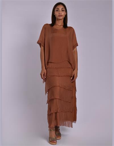 MADE IN ITALY BROWN FRILL DRESS