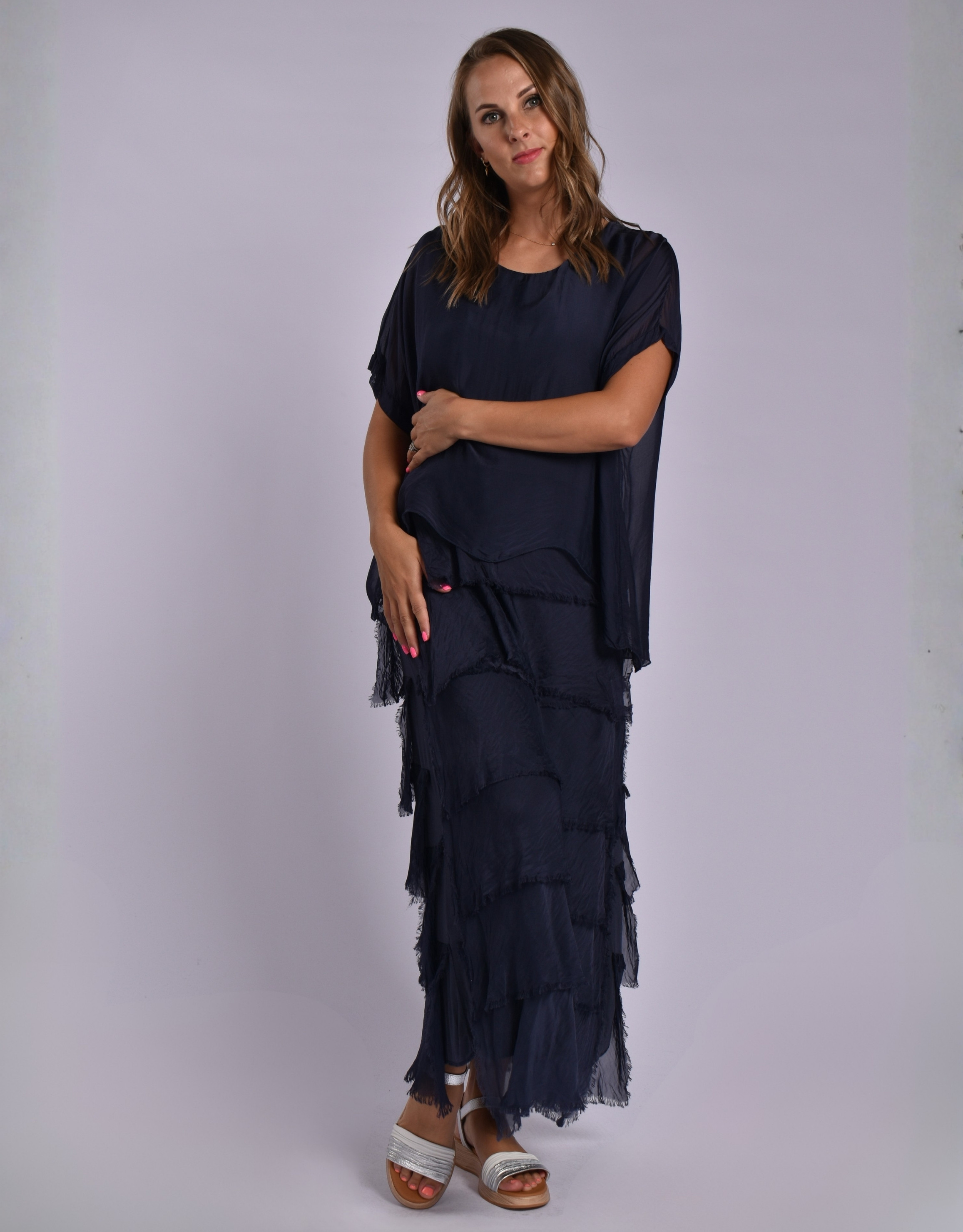 MADE IN ITALY NAVY FRILL DRESS