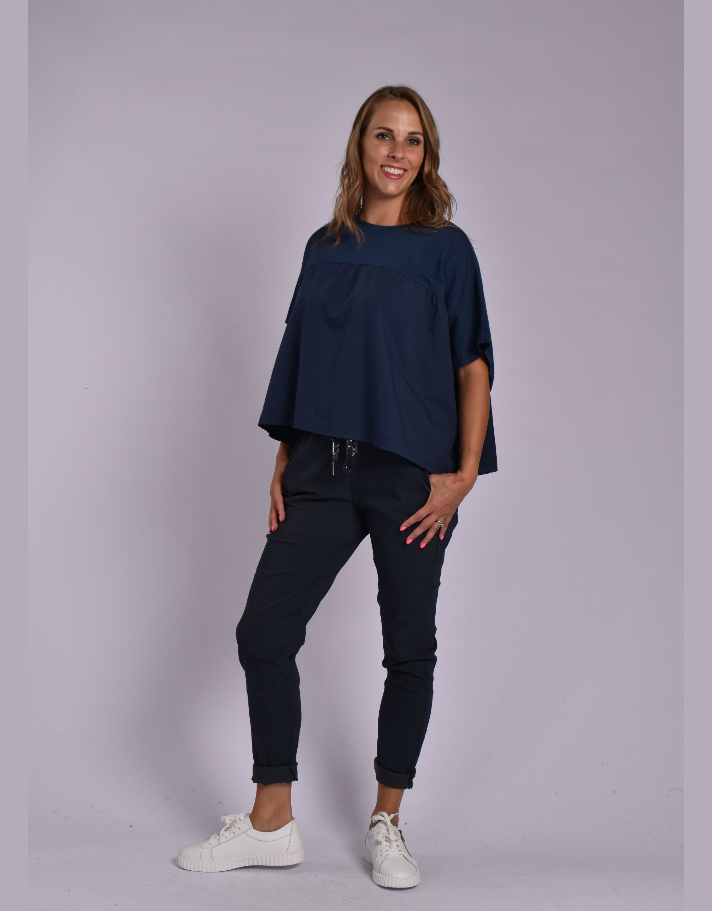 MADE IN ITALY NAVY BUTTON PANTS