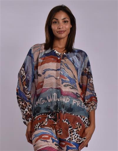 MADE IN ITALY TEAL MULTI BLOUSE