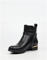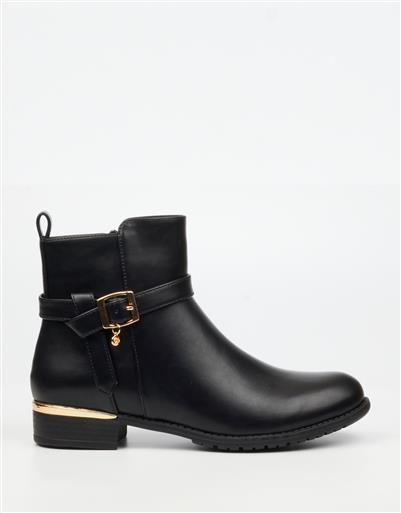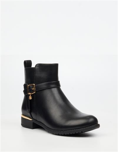 A versatile ankle boot featuring a classic buckle accent and sleek finish. Ideal for daily wear, this style balances comfort with understated elegance.