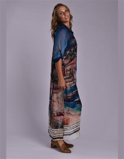 MADE IN ITALY BLUE MULTI SILKY DRESS