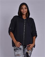 - Front zip with silver hardware