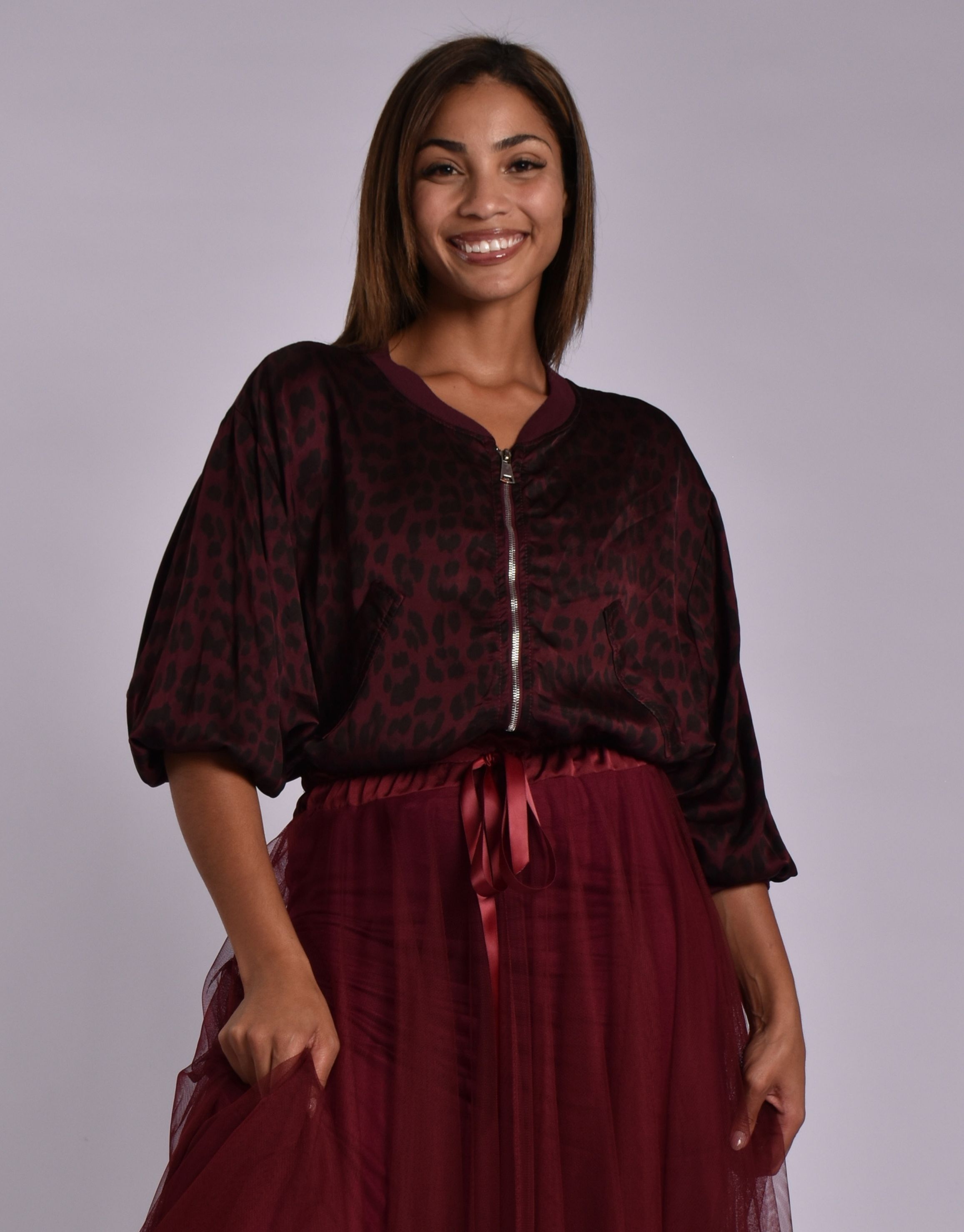 MADE IN ITALY MAROON LEOPARD PRINT JACKET