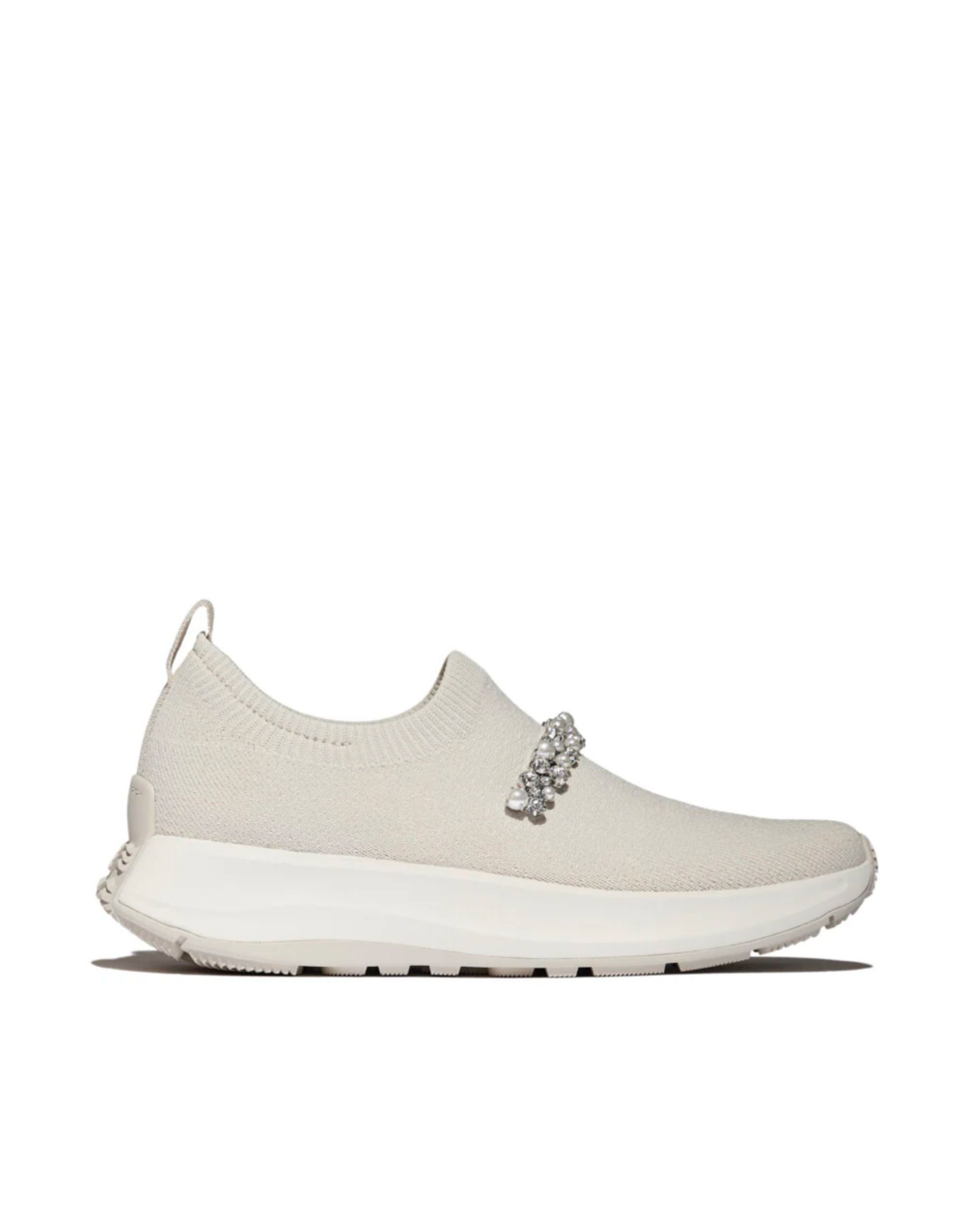 FIT FLOP BEIGE F-MODE PEARL & CRYSTAL KNIT SNEAKER