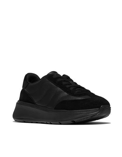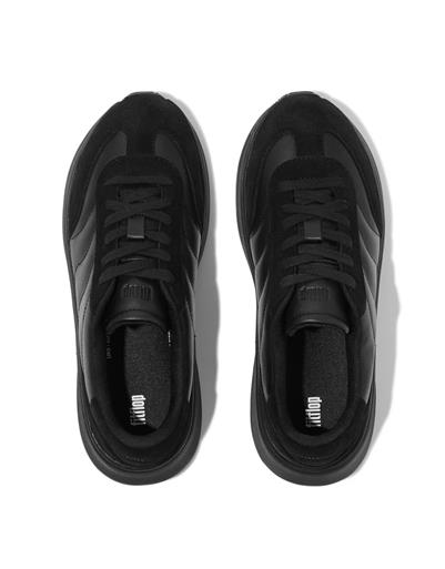 FIT FLOP ALL BLACK F-MODE WAVE LEATHER SUEDE SNEAKER