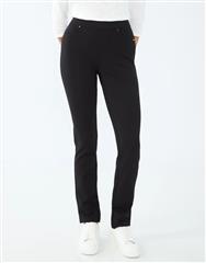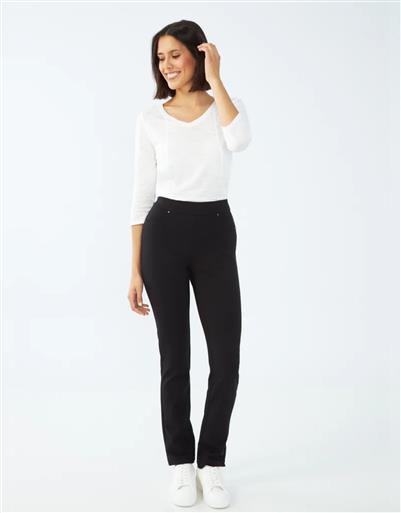 Designed for comfort and versatility, this pull on slim leg pant offers a sleek and streamlined silhouette. The smooth waistband creates a flattering fit, while the stretch fabric ensures all day ease. A wardrobe essential that pairs effortlessly with knitwear or blouses.