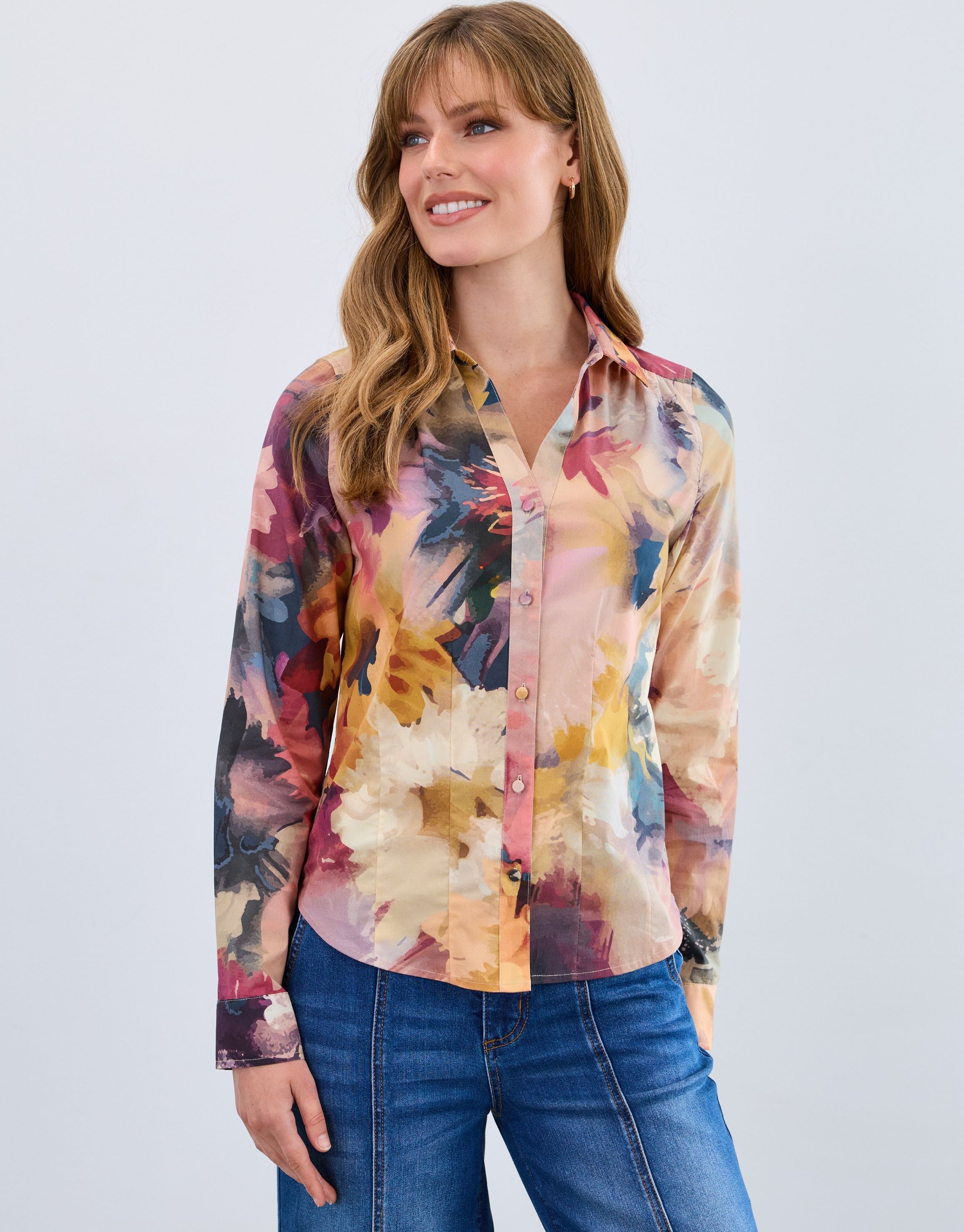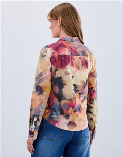 A classic collared shirt with a soft watercolour style print. Finished with a button front and long sleeves for an easy polished look.