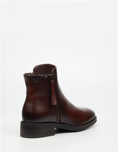 This chic ankle boot in rich chocolate delivers timeless sophistication with a contemporary twist. Featuring a smooth finish, side zip closure and tassel detail, it offers effortless style and practicality. The low stacked heel provides comfortable lift, making it an easy choice for both work and weekend wear.