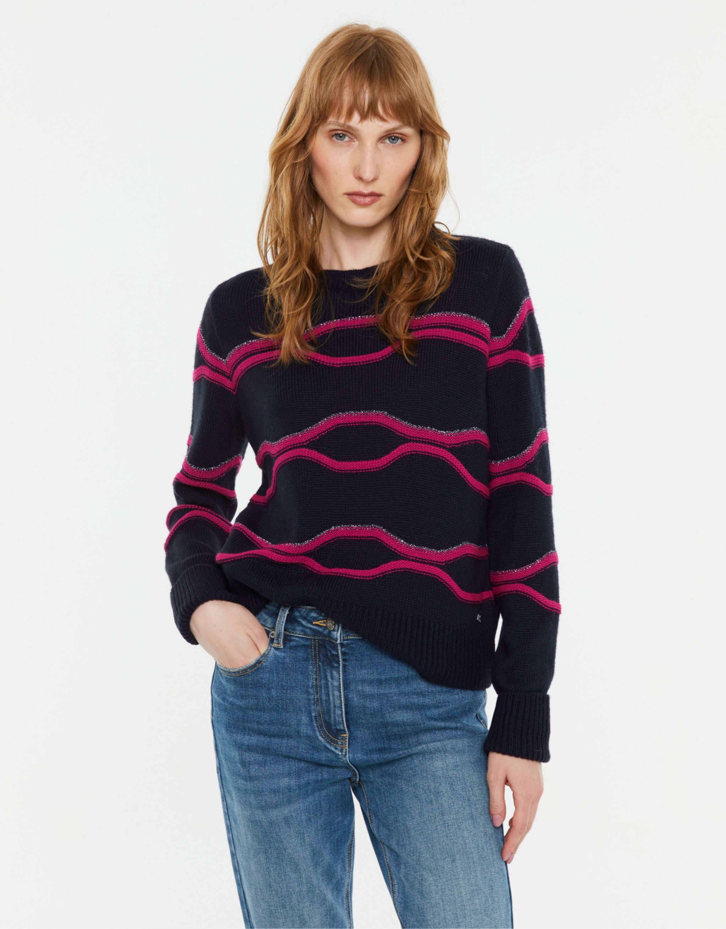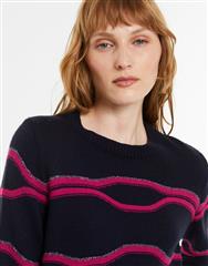 A statement knit featuring bold horizontal stripe detailing. The relaxed silhouette and ribbed trims create balance between comfort and structure. Designed for effortless styling, it pairs seamlessly with denim for a modern casual look.