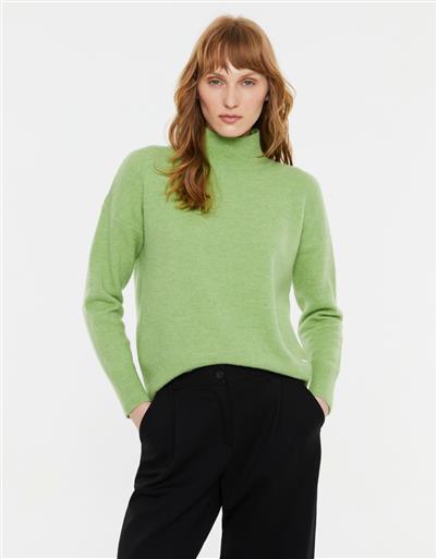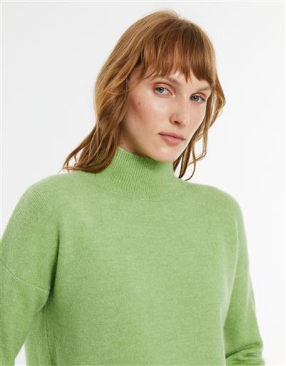 A soft knit sweater in a fresh green tone with a relaxed, contemporary shape. The high neckline and clean finish create a refined look while maintaining comfort. An effortless piece that layers beautifully over trousers or skirts.