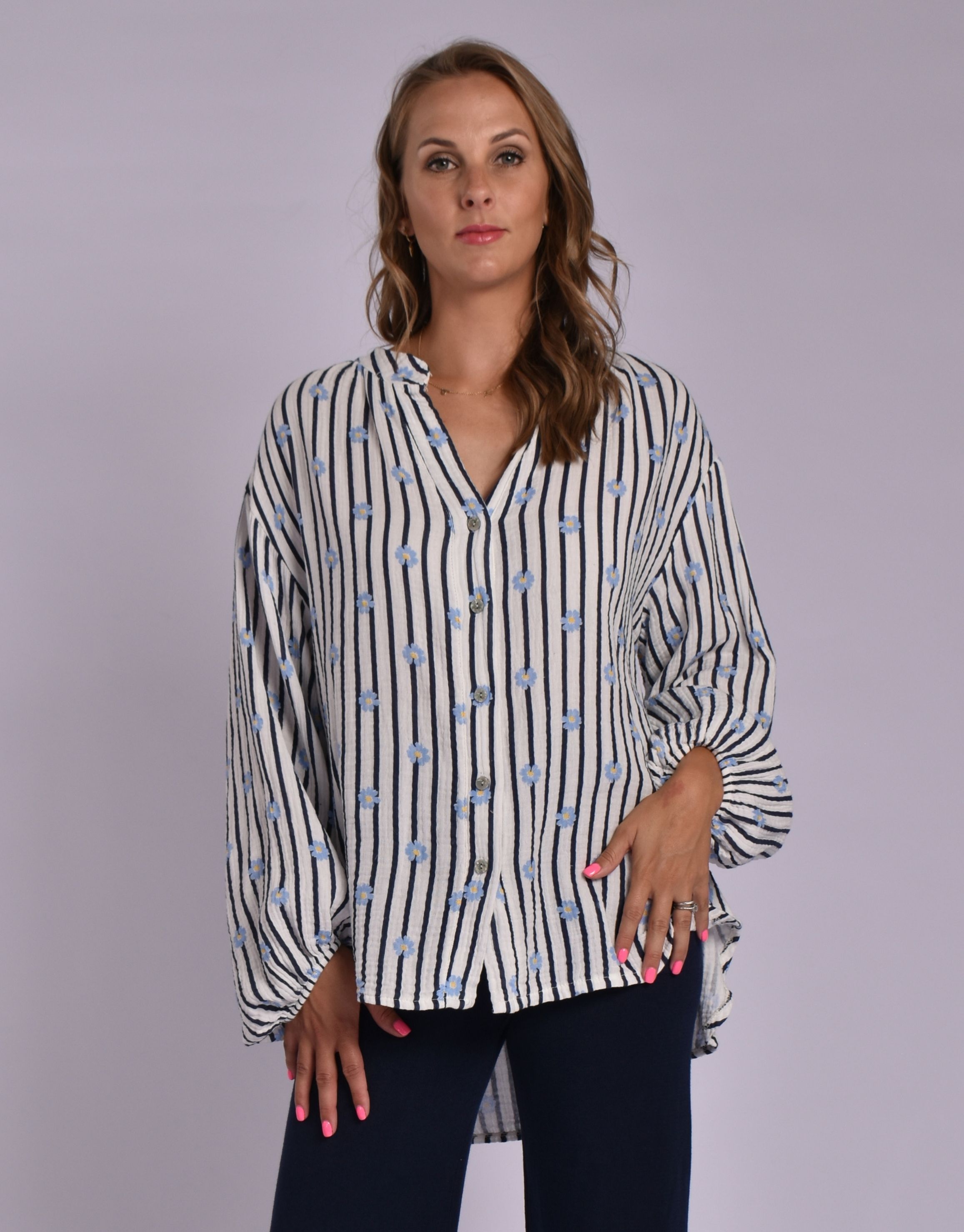 MADE IN ITALY WHITE NAVY BLOUSE
