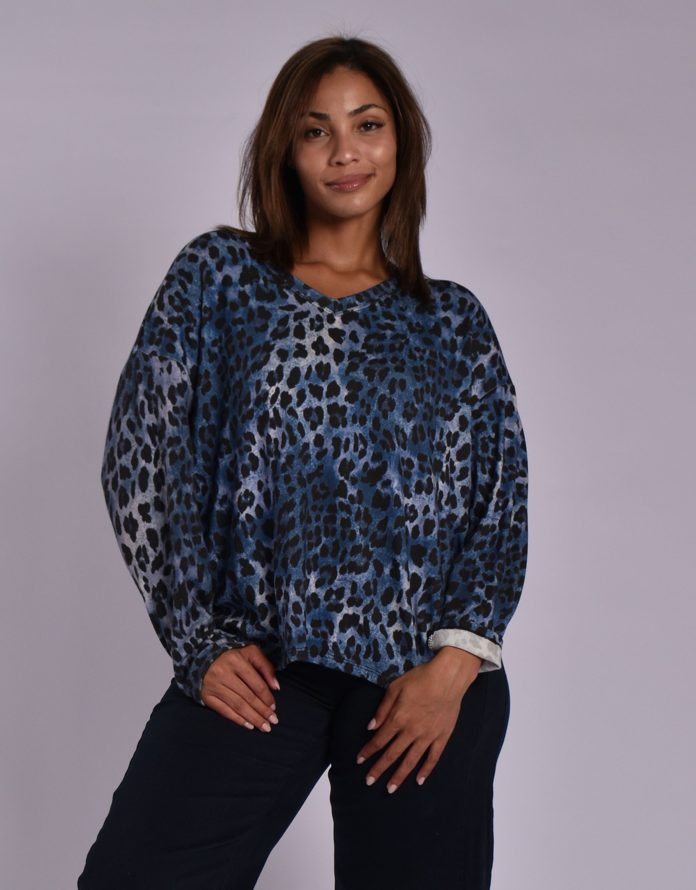 MADE IN ITALY NAVY LEOPARD TOP