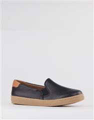A modern leather slip on sneaker designed for effortless wear and everyday comfort. The streamlined silhouette and flexible sole provide ease and practicality.