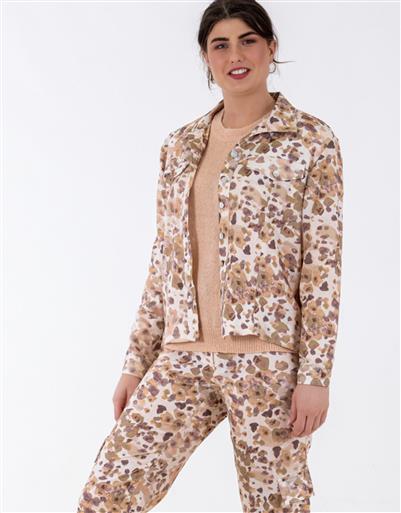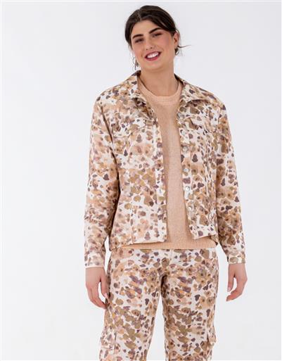 A modern printed jacket designed to complement and complete a coordinated look. The structured silhouette is balanced by a lightweight feel for easy layering. Its refined print adds subtle interest while maintaining a clean aesthetic.