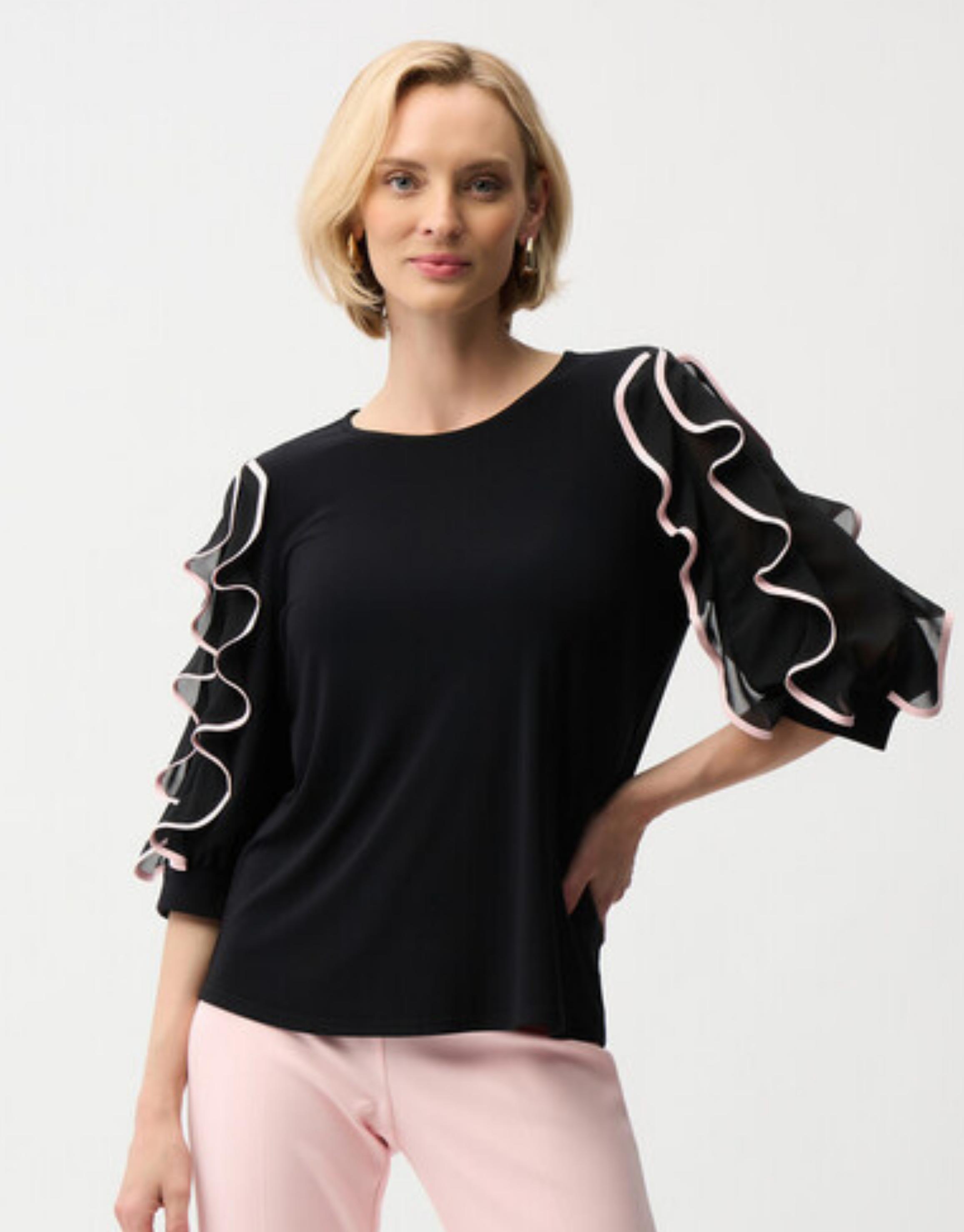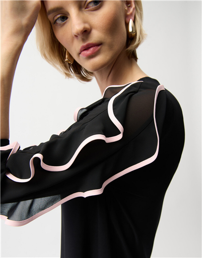 JOSEPH RIBKOFF BLACK PETAL PINK TOP