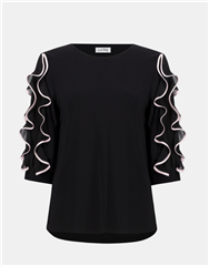 Elevate your everyday with this silky knit top, designed with three-quarter chiffon puff sleeves and playful ruffle accents. A contrast georgette binding adds texture, while the crew neck keeps it classic.